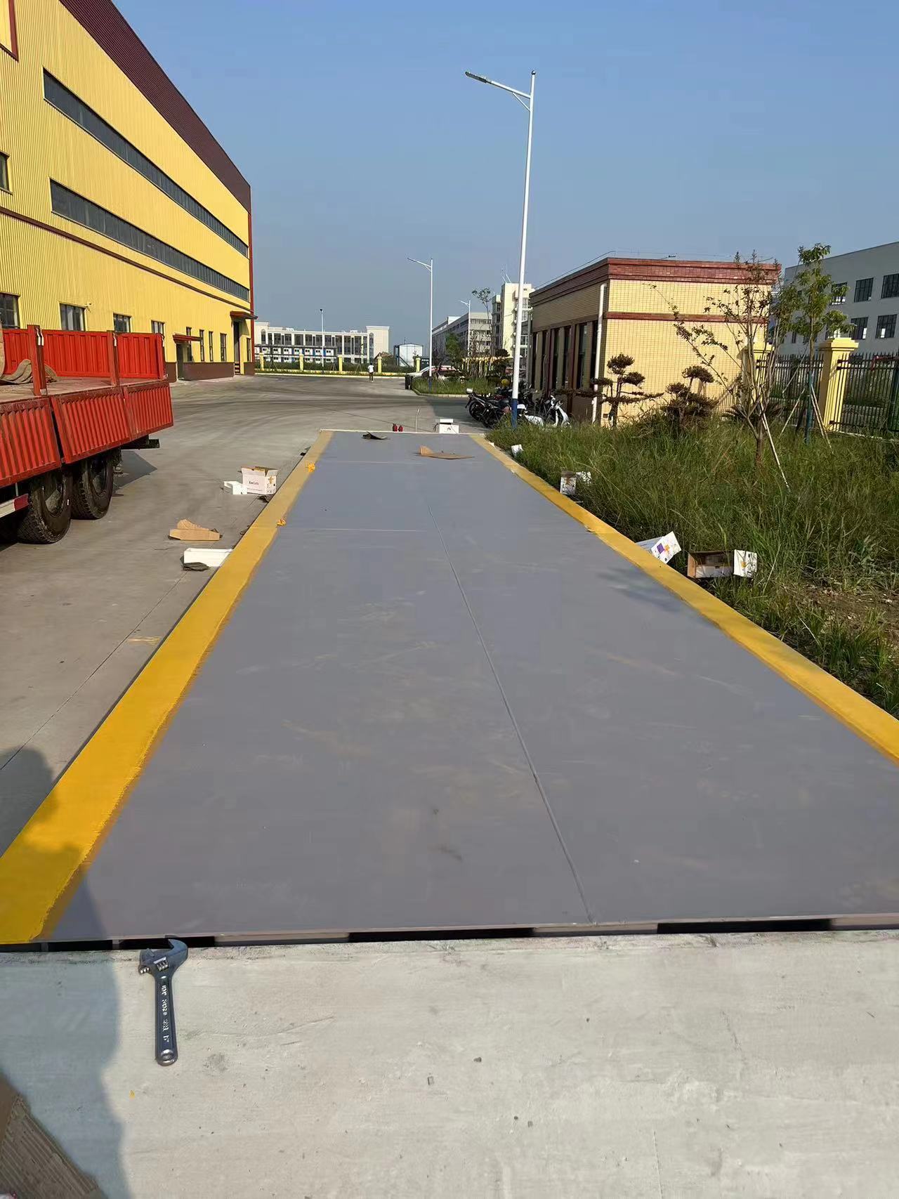 工程概況:地磅秤臺采用3.0X16M,3節(jié)U型鋼結(jié)構(gòu)秤臺6mm U型梁鋼結(jié)構(gòu)6條大梁;折彎,10mm面板。稱重80t,儀表顯示精度為:10KG.